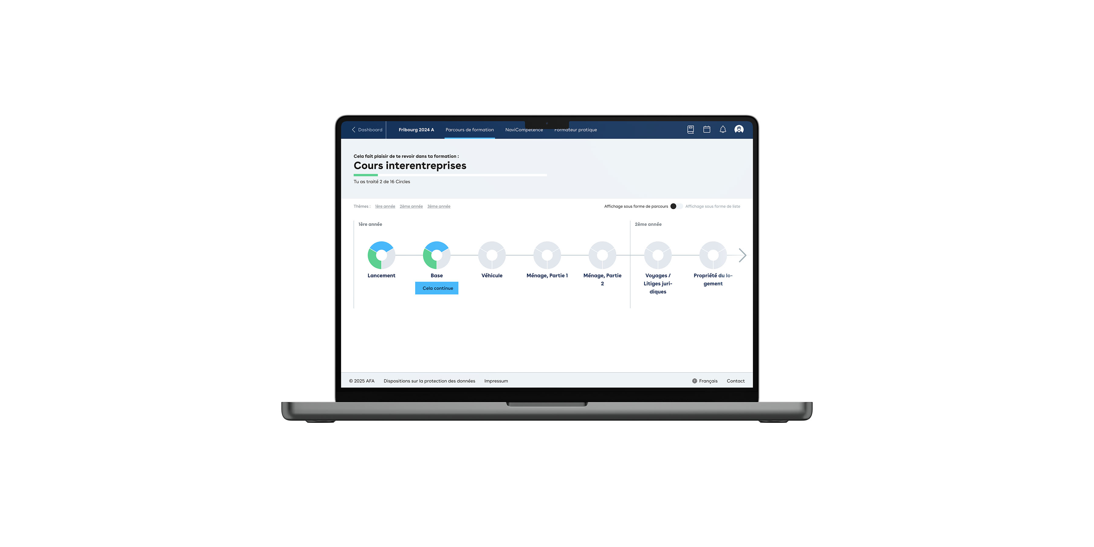 Avec myAFA, l’AFA met à la disposition des apprentis et des responsables des cours interentreprises (CIE) un environnement d’apprentissage numérique doté d’instruments de mise en œuvre pour les cours interentreprises et les certificats de compétences CIE.
